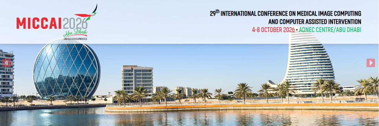 The 29th International Conference on Medical Image Computing and Computer Assisted Intervention (MICCAI 2026) will be held from Sunday October 4th to Thursday October 8th 2026 in ANDEC Centre, Abu Dhabi - United Arab Emirates. This will be the first MICCAI conference hosted in UAE.